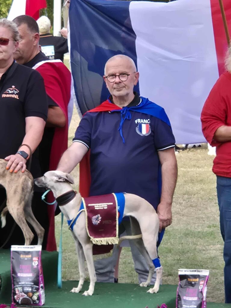 Az eredményhirdetés már előző nap is óriási élmény volt, zászlót lengetve örülni a csapattársaink sikerének, magyar himnuszt hallgatni az agárpálya világbajnokságon, minden új és intenzív élmény. De másnap. Ott állni a világ tetején, a gelsenkircheni dobogón Echo mögött, a többiek nekünk tartották a magyar zászlót… Életemben először tényleg jó volt magyarnak lenni és tartozni a csapathoz. És akkor még nem is említettem kicsi Zaz-t. Nálunk született és ott a dobogón.