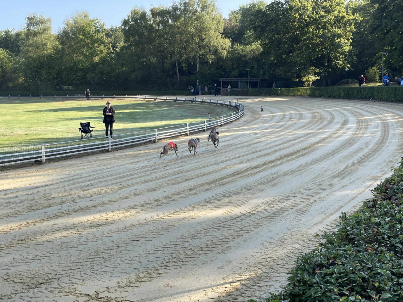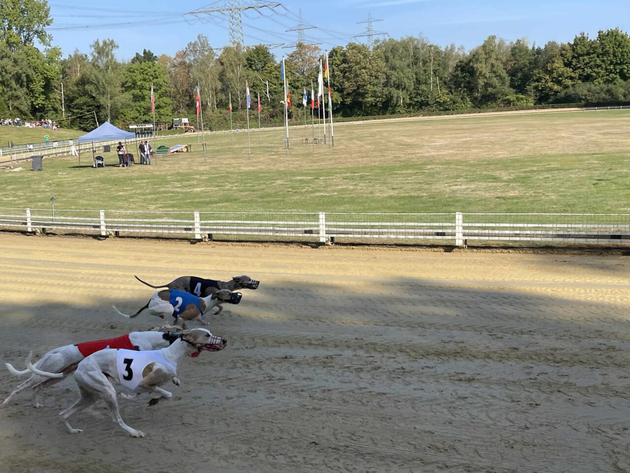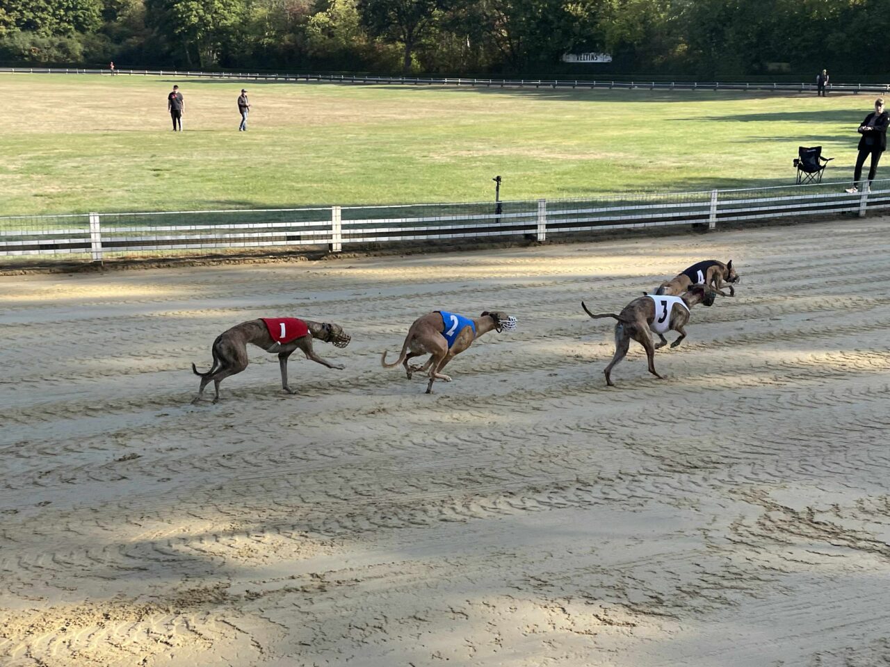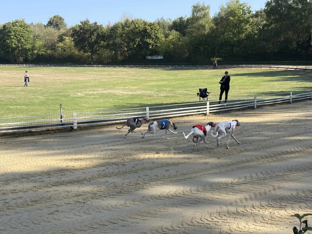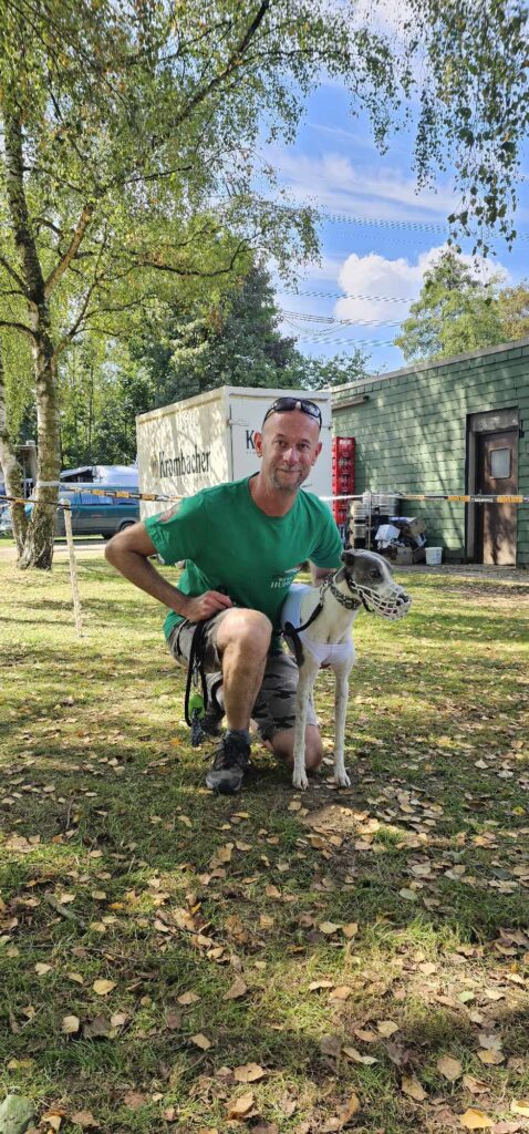 Túl voltunk az állatorvosi vizsgálaton, Echo és Party is rendben, jöhet a versenynap. Itt álljunk meg kicsit mert majdnem elfelejtettem egy kardinális kérdést. Hát a mellékhelyiség ami 500+ méterre volt a sátrunktól a pálya túlsó végénél. Nos ez okozott némi kellemetlenséget főleg reggel, ébredés után. Ennek is köszönhető, hogy a ott töltött teljes napok több, mint 20km gyaloglással végződtek. Vissza az eredeti történethez, jött a versenynapunk és érthetetlen módon egyáltalán nem izgultam. Hajnalban whippet súlymérés, na innentől még annyira sem izgultam. A súlyhatárok érdekesen alakultak, Partyka sokkal nagyobbakkal került egy csoportba, Echo pedig a legnehezebb, leggyorsabb kanok közé. Korelnökként, egy őrült hosszú út után és akkor még nem is raktam össze fejben, hogy az allergiája sem segíti a nagy teljesítményt. Megmondom őszintén, itt elengedtem mindent és konstatáltam, hogy utaztunk 1200km-t egy őrült drága edzésért de azért titkon bíztam a csodában. Következtek a futamaink. Party nagyon elaludta a rajtot az 1. előfutamában és el is engedte fejben, le is maradt a végére gondoltam magamban de a futamról lejövet a nyakát fájlalta, meghúzódhatott valami. A két előfutam között óvatosan kimasszíroztuk és figyeltük, hogy tud-e még futni szerencsére panaszmentesen fordultunk a 2. körre. Meg kell még említenem, hogy sajnos hozzá vannak szokva a benzinmotoros nyúlgéphez otthon és óhatatlanul is ahhoz igazítják a rajtra rákészülést. Nekünk is kell ilyen akkus, csendes ha a jövőben labdába akarunk rúgni. Echo szintén elaludta a rajtját de tőle ez nem szokatlan az első előfutamban, ő kicsit olyan, mint a gazdái reggel 1 kávéval de aztán összekapta magát és tartotta az iramot az erős mezőnnyel, ez némi reménységet adott. A második előfutamoknál rengeteget vártunk, mint kiderült elírtak pár időt ami miatt borult az egész beosztás de kb 40 perc végre megint ott álltunk a nyergelőben. Partyka megint elaludta a rajtot de már sokkal jobb volt a tempója, próbált is előzni de sajnos nem sikerült, nem jutott a döntőbe. Nagyon nagyon megdicsértük, ő megtett mindent. Echo szintén pocsék rajt után felzárkózott és tartotta a lépést, ez meg is hozta gyümölcsét, 6. idővel de bent van a döntőben! Nagyon-nagyon örültünk, szinte hihetetlen volt ebben a csoportban, nekünk ez felért egy győzelemmel. Hasonlóan kicsi Zaz, aki ügyes versenyzéssel szintén döntőben jutott a könnyű-súlyú szukák között a 6. idővel azaz krumplibogár jelmezben. Neki is élete első ekkora versenye, neki is minden új és hát ő is még tanuló. Itt valami megfordult bennem és már tényleg felszabadultan boldog voltam, nem is nagyon lepleztem szerintem de valójában nem is akartam, itt már nem érdekelt ha hülyének néznek, kiengedtem ami ki akart törni.