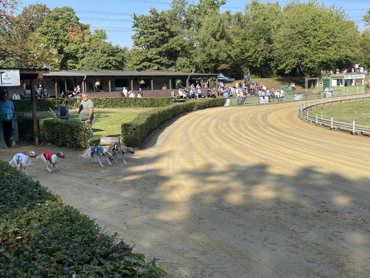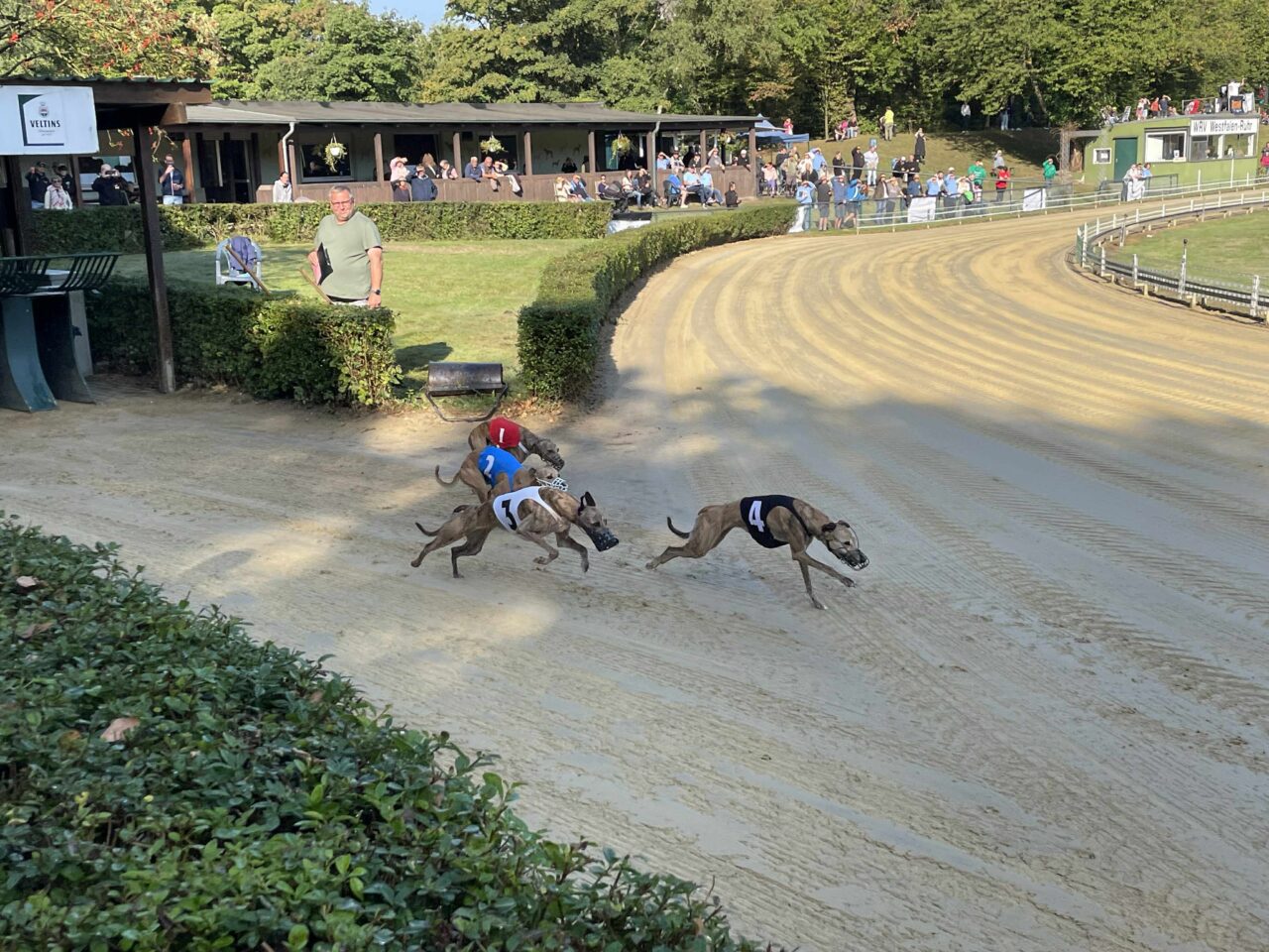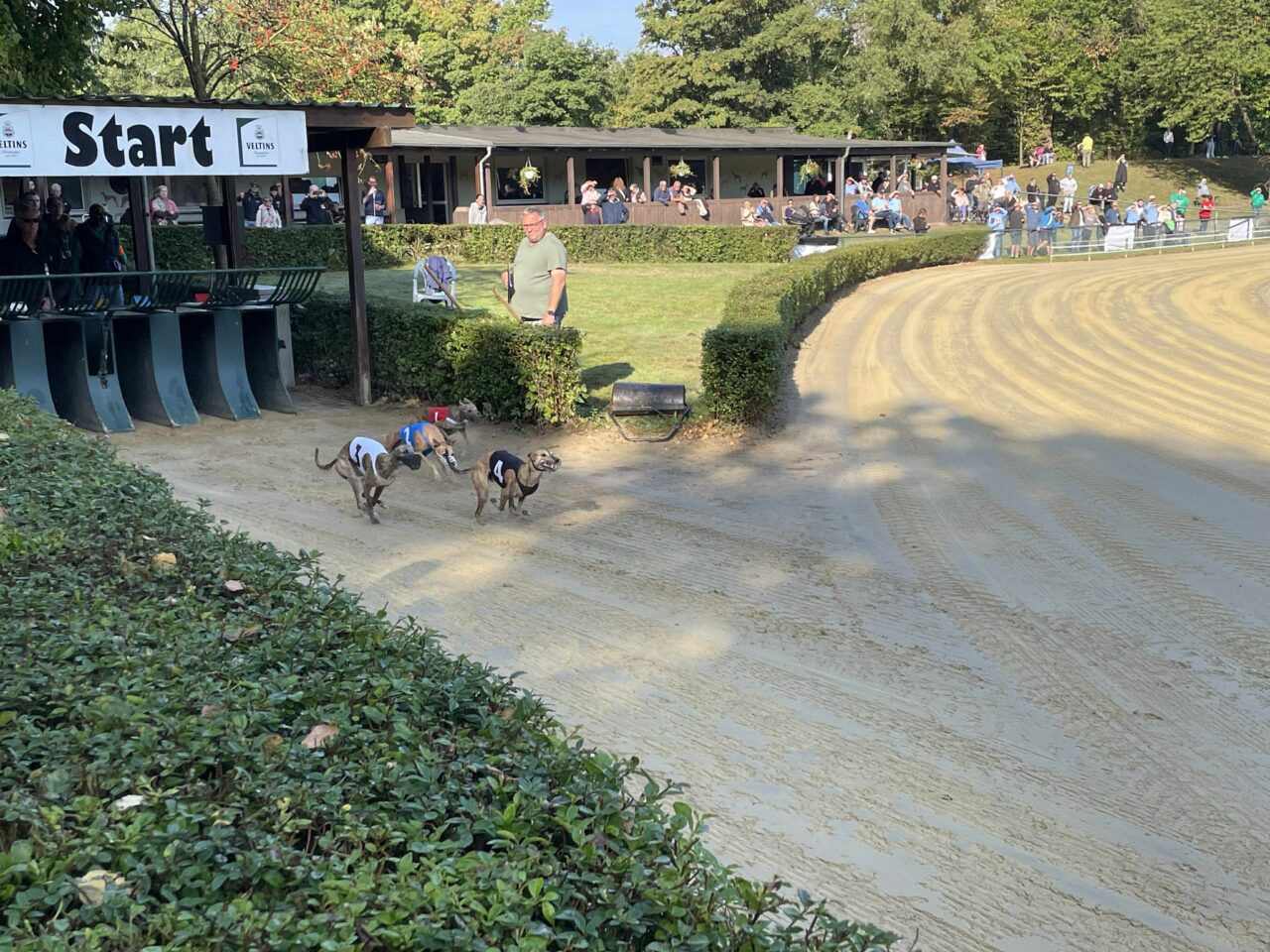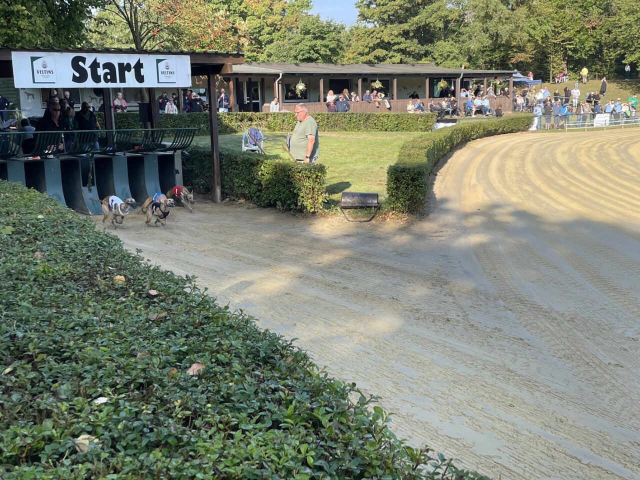 Túl voltunk az állatorvosi vizsgálaton, Echo és Party is rendben, jöhet a versenynap. Itt álljunk meg kicsit mert majdnem elfelejtettem egy kardinális kérdést. Hát a mellékhelyiség ami 500+ méterre volt a sátrunktól a pálya túlsó végénél. Nos ez okozott némi kellemetlenséget főleg reggel, ébredés után. Ennek is köszönhető, hogy a ott töltött teljes napok több, mint 20km gyaloglással végződtek. Vissza az eredeti történethez, jött a versenynapunk és érthetetlen módon egyáltalán nem izgultam. Hajnalban whippet súlymérés, na innentől még annyira sem izgultam. A súlyhatárok érdekesen alakultak, Partyka sokkal nagyobbakkal került egy csoportba, Echo pedig a legnehezebb, leggyorsabb kanok közé. Korelnökként, egy őrült hosszú út után és akkor még nem is raktam össze fejben, hogy az allergiája sem segíti a nagy teljesítményt. Megmondom őszintén, itt elengedtem mindent és konstatáltam, hogy utaztunk 1200km-t egy őrült drága edzésért de azért titkon bíztam a csodában. Következtek a futamaink. Party nagyon elaludta a rajtot az 1. előfutamában és el is engedte fejben, le is maradt a végére gondoltam magamban de a futamról lejövet a nyakát fájlalta, meghúzódhatott valami. A két előfutam között óvatosan kimasszíroztuk és figyeltük, hogy tud-e még futni szerencsére panaszmentesen fordultunk a 2. körre. Meg kell még említenem, hogy sajnos hozzá vannak szokva a benzinmotoros nyúlgéphez otthon és óhatatlanul is ahhoz igazítják a rajtra rákészülést. Nekünk is kell ilyen akkus, csendes ha a jövőben labdába akarunk rúgni. Echo szintén elaludta a rajtját de tőle ez nem szokatlan az első előfutamban, ő kicsit olyan, mint a gazdái reggel 1 kávéval de aztán összekapta magát és tartotta az iramot az erős mezőnnyel, ez némi reménységet adott. A második előfutamoknál rengeteget vártunk, mint kiderült elírtak pár időt ami miatt borult az egész beosztás de kb 40 perc végre megint ott álltunk a nyergelőben. Partyka megint elaludta a rajtot de már sokkal jobb volt a tempója, próbált is előzni de sajnos nem sikerült, nem jutott a döntőbe. Nagyon nagyon megdicsértük, ő megtett mindent. Echo szintén pocsék rajt után felzárkózott és tartotta a lépést, ez meg is hozta gyümölcsét, 6. idővel de bent van a döntőben! Nagyon-nagyon örültünk, szinte hihetetlen volt ebben a csoportban, nekünk ez felért egy győzelemmel. Hasonlóan kicsi Zaz, aki ügyes versenyzéssel szintén döntőben jutott a könnyű-súlyú szukák között a 6. idővel azaz krumplibogár jelmezben. Neki is élete első ekkora versenye, neki is minden új és hát ő is még tanuló. Itt valami megfordult bennem és már tényleg felszabadultan boldog voltam, nem is nagyon lepleztem szerintem de valójában nem is akartam, itt már nem érdekelt ha hülyének néznek, kiengedtem ami ki akart törni.